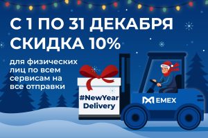 С 1 по 31 декабря для физических лиц действует новогодняя скидка 10% на все отправки по всем нашим сервисам (кроме ТЭО).
