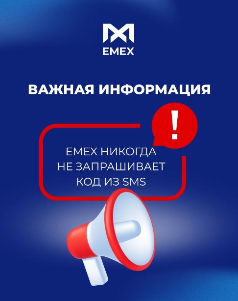 В связи с участившимися случаями мошенничества компания EMEX официально сообщает: мы никогда не запрашиваем коды подтверждения из SMS-сообщений.